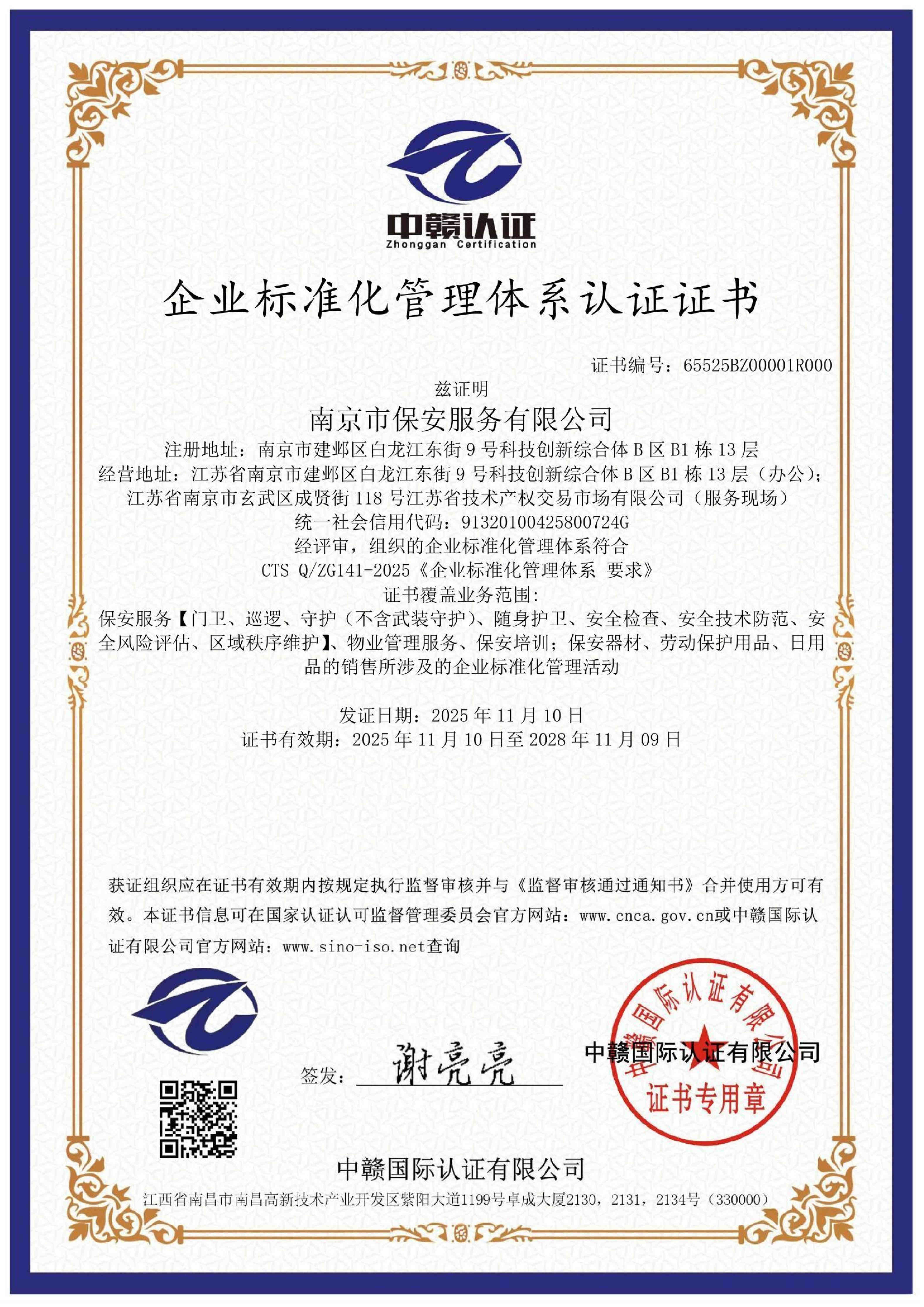 企業(yè)標(biāo)準(zhǔn)化管理體系認(rèn)證證書(shū)