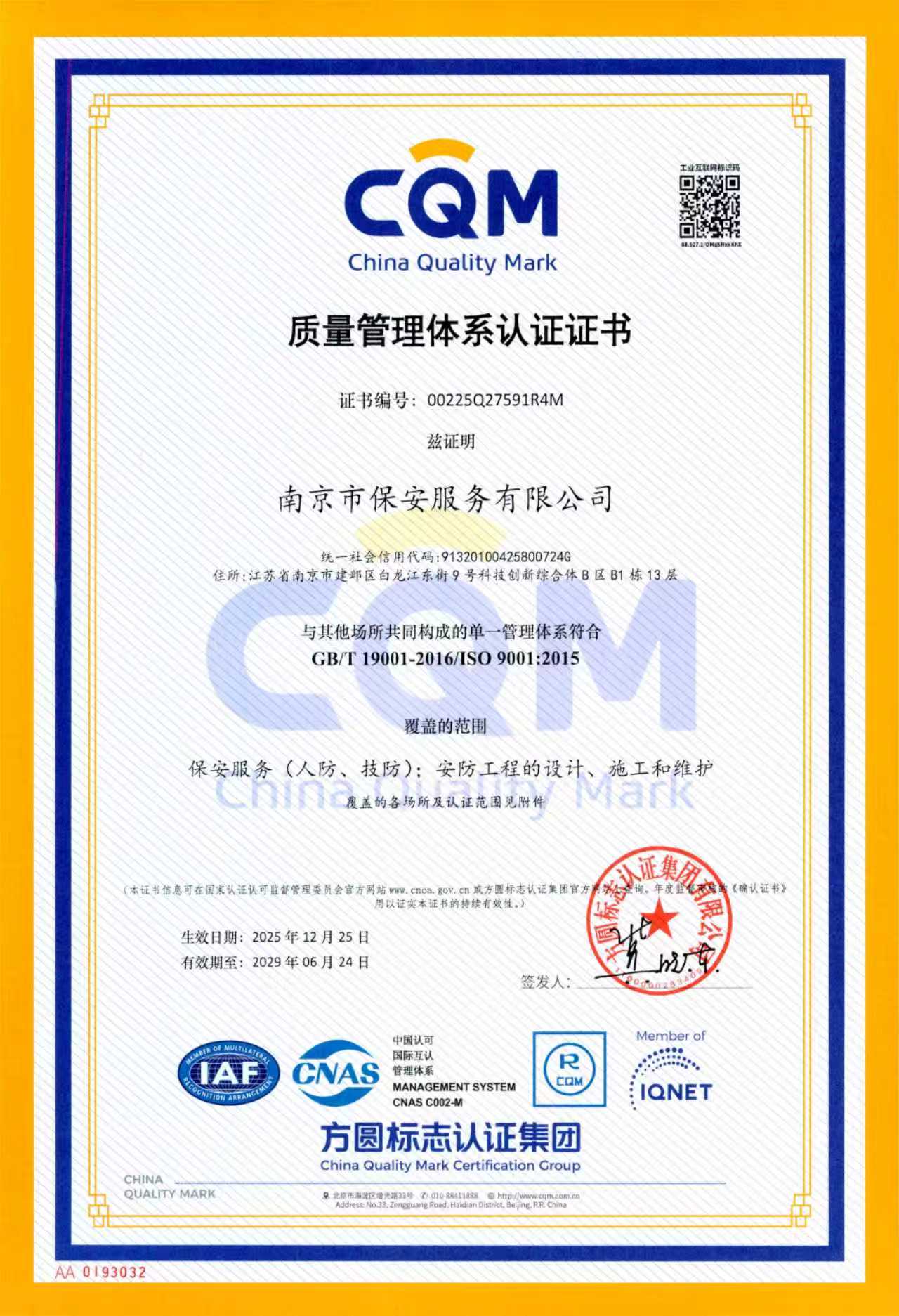質(zhì)量管理體系認(rèn)證證書(shū)